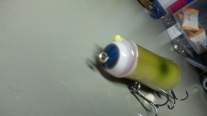 穴あけて装着はできるが、実用強度にかなり不安。まぁ、自作ルアーはラバージグ以外釣れたことないから心配はいらんか。チェイスは多いのに、目の前でソッポむかれまくり・・・。