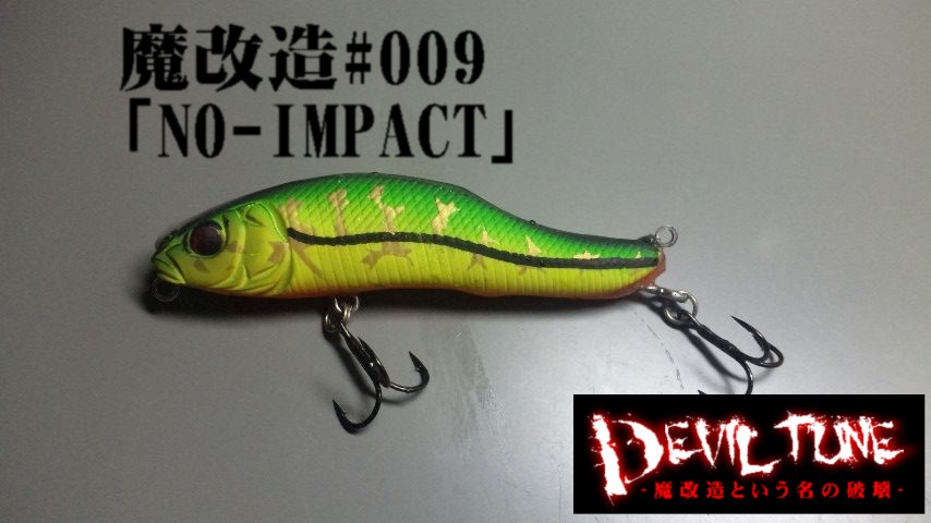 でも思った以上に浮力高くて、ペンシルにするには水面から飛び出しすぎで。んじゃタダ引きすんべ。と思ったけど全くのノーアクション。こいつこそ真のNO-IMPACT。